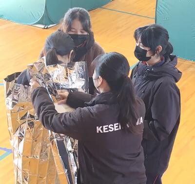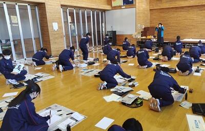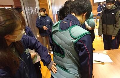 11月16日(日)気仙沼市の津波総合防災訓練が,新月地区を重点地区として行われました。新月地区は,地理的に「命を守る」側の役割になることが考えられ,中学生と地域の関係団体が連携して訓練を行うことはとても意義のあることです。春先から防災委員が中心となって事前訓練をしてきたことを活かし,55名の避難役の方々の対応に当たりました。この貴重な経験を一過性にすることなく,地域の一員として防災について考えるきっかけにしてほしいと思います。