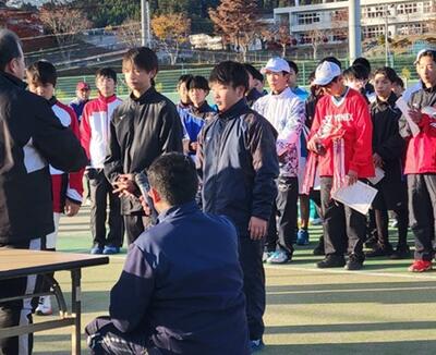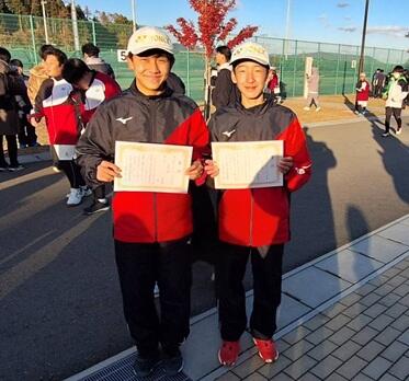 11月22日(土)に,ソフトテニス部の学年別大会が行われました。1学年の部で,小野寺英介・齋藤旭ペアが準優勝,2学年の部で千葉源一朗・小松正侑ペアが第3位に入賞するなど,大健闘の大会となりました。現在,全国的にインフルエンザが猛威を振るっている中で練習量もままならないところですが,この冬にできる練習を考えながら工夫して取り組み,来たる春の本番に向けて頑張ってほしいと思います。