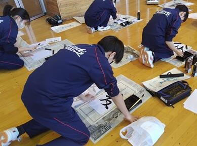 12月1日(月)いよいよ今日から1年の締めくくり「12月」になりました。学校では,年末・年始の風物詩,書きぞめ大会に向けた国語科「書写」の授業が始まりました。トップをきって3年生が授業をしていたので,様子を見てきました。今年の3年生は「友情」の二文字。行書体独特の書き順やバランスに苦労しながら,1回目の練習に取り組みました。