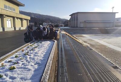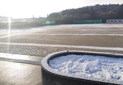12月5日(金)今日の朝の登校風景です。校庭や学校花壇にはうっすらと雪(霜?)が残っていました。登校してきた生徒に聞いたところ,通学路もところどころ凍っていたそうです。学校は,インフルエンザの拡大防止策と生徒・護者の皆様のご協力により,罹患状況もなんとか落ち着き,昨日から時間は短いですが部活動も再開しました。これから本格的な冬にさしかかります。車の送迎の際には道路凍結等にご注意いただき,これまで通り時間に余裕を持って安全運転をお願いいたします。