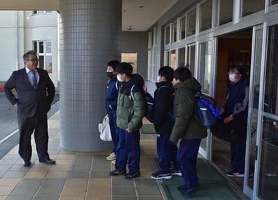 1月8日(木)冬休み明け初の登校日の朝,昇降口前で生徒(全員ではありませんが)を出迎えました。「あけましておめでとう!」と声を掛けると,「今年もよろしくお願いします!」と返してくれる生徒もいました。元気いっぱいの笑顔が多く,安心するとともに,「学校」としての新年のスタートを感じました。全校集会では,3年小野寺結芽さん,2年及川蒼真さん,1年菅原想真さんが,進学や進級に向けて努力したいことを新年の抱負として発表しました。私からは「午年」にちなみ「前に進むことの大切さ」について話しました。2026年が「成長の一年」になるように,教職員一同全力でサポートしてまいります!