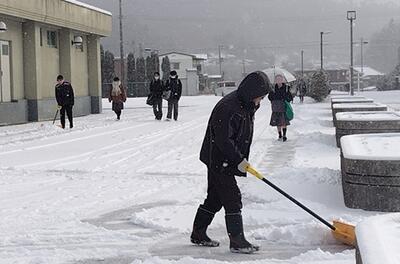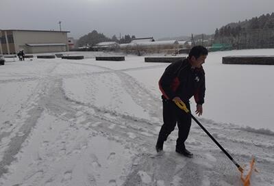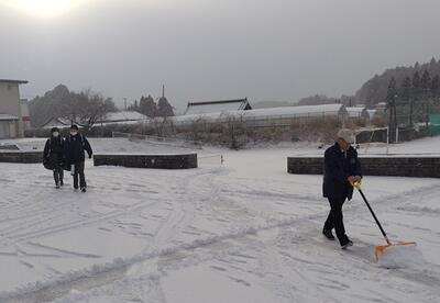 2月9日(月)昨晩から降り始めた雪が,校舎,校庭を覆い尽くす雪の朝でした。出勤すると,生徒の通り道を確保し,安全に登校できるように,先生方が朝早くから雪かきをしていました。私も一緒に雪かきをしていると,近くにお住みの地域の方も手伝ってくれました。たくさんの方に見守られ,新月の子どもたちは育っていくのだなぁと思いました。手伝おうとする生徒もいたと思いますが,インフルエンザの流行もありますので,雪かきは先生方で対応しています。そのインフルエンザですが,まだ数名の欠席者はいるものの,今日は久しぶりに全学年揃っての月曜日を迎えることができました。まだまだ余談は許されませんが,生徒が登校する姿に少しほっとした朝でした。