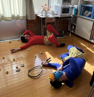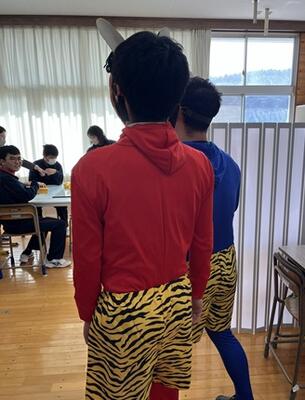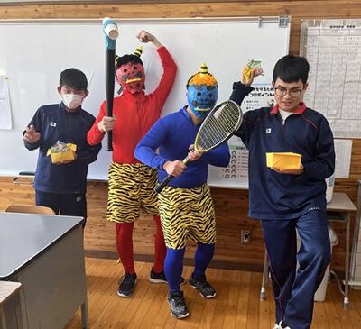 1月30日(金)もうすぐ節分ですね。写真は生徒が「和紙」で手作りした鬼の面です。かぶっているのは新月中学校の先生ですが,誰かわかりますか? 今,新月中学校の「鬼」といったら,なかなか収まらない「インフルエンザ」です。週末は,人混みや不要不急の外出を避け,うがい,手洗い,換気,早めの睡眠など,基本的な予防対策を継続してほしいと思います。来週は全学年が揃って,楽しく豆まきができればなぁと思います。