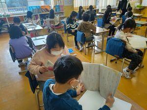 5校時に校舎を回っていると3年2組では国語「俳句に親しむ」の学習をしていました。易しい文語調の俳句を音読したり暗唱したりするなどして,言葉の響きゃリズムに親しむことをねらいとして学習単元です。