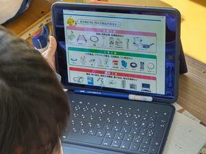タブレットでインターネットの情報を検索し,分かったことをノートに書き出していきます。
