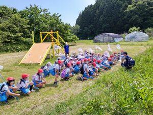 一足先に到着した私は,農園の熊谷涼美枝さんと共に子どもたちを出迎えました。涼美枝さんに話を聞くと,ご近所の皆さんが,子どもたちのために事前に草刈りをしてくれたとのこと,有り難いです。