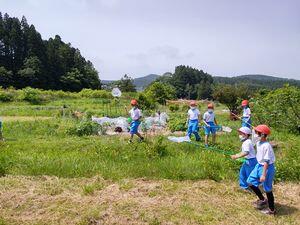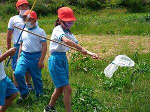 担任のO先生の注意事項を聞いて,早速,グループ毎に虫取り開始。みんな楽しそうです。