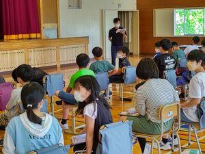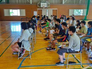 子どもたちはワークにメモを取ったり,質問や意見を述べたりしながら,しっかり聞くことができました。マグロ船見学,岩井崎の生き物調査,水山養殖場見学,そして今日の講話などを基に,子どもたちは,それぞれのハテナを整理して,これから取り組む探究課題を設定します。