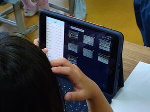 2組のHさんのタブレットを見ると,先生がロイロノートというアプリで作った提出箱がずらりと並んでいました。2組のみんなは,教室毎に発見したものの画像を送ることができたんですね。1年生もタブレットの使い方に大分,慣れてきたようです。
