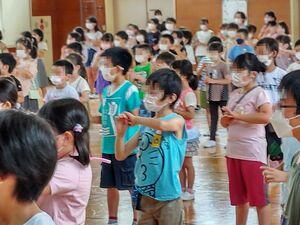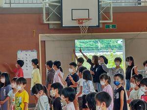 今日の業前は,久しぶりに体育館に集まっての音楽朝会を行いました。ただ,マスクを外して大きな声で歌声を響かせるという通常の音楽朝会はまだできません。