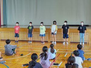 その6年生は,明日から1泊2日で修学旅行に行ってきます。業間に結団式を行いました。それぞれの班が活動のめあてを発表した後,最後にR君が児童代表の言葉を述べました。会津若松も暑さが予想されます。熱中症に気を付け,みんなで協力しながら活動を楽しんできて欲しいです。