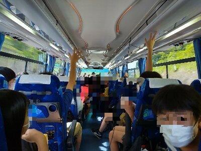 バスの中では、まず、ガイドさんが用意してくれた色紙に、修学旅行で一番楽しみにしていることを書きました。その後はバスレクです。S君は名前変えゲームを、Y君は会津に係わるクイズを出しました。