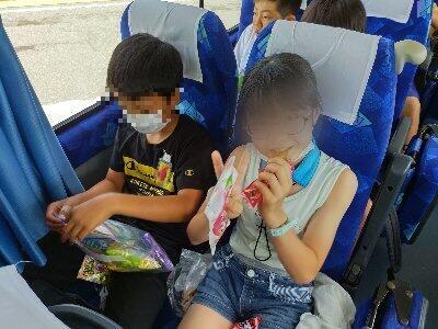 松川サービスエリアでトイレ休憩の後は、おやつタイムを楽しみました。