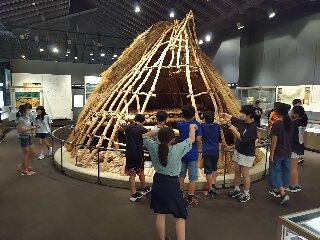 自主研修を終え、本日最後の見学地である県立博物館に到着。記録担当はスマホの使い方にも慣れ、たくさん写真を撮っているようでした。