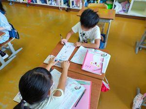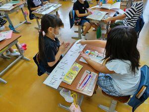 2校時に校舎を回ると,1年1組の子どもたちが何やら作業中でした。