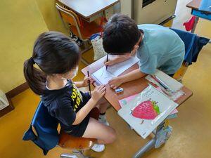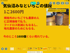 今日の午前中は2名の子どもたちが,階上の規格外のイチゴを使ったホワイトチョコ「気仙沼みなといちご」を通してフードロスに取り組んだ成宮崇史さんのもとへ取材にいきました。