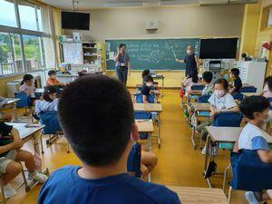 この年齢に食い付いたのが担任のO先生です。自分の自己紹介でレイチェル先生と同じ歳だと話しました。当然,子どもたちからは「ちがーう!」という突っ込みをして,一気に楽しい雰囲気になりました。