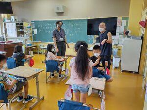 2人は,成宮さんが以前ゲストティーチャーとして来校した際に聞いたお話から生じた新しい疑問をぶつけ,成宮さんはひとつひとつ丁寧に答えてくれました。S君のお母さんには送迎だけでなく,子どもたちの見守りもしていただきました。ありがとうございました。