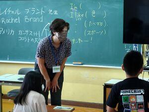 レイチェル先生はアメリカのカンザス州出身,大学では国際学を学んでいたそうです。年齢は20代。(子どもたちには教えてくれました)