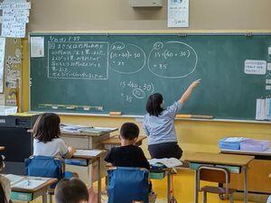 先生に丸をつけてもらい,合格だった人はタブレットドリルに取り組んでいました。しっかり理解をするために繰り返して練習することは大切なことです。日本人の伝統的な世界観の一つとして「ハレの日」と「ケの日」があるように,思考力重視の「ハレの授業」と習得メインの「ケの授業」をバランス良く単元に位置付けて指導するように先生方にはお願いしています。今日は両方の要素が入っていた授業でした。