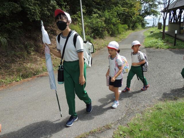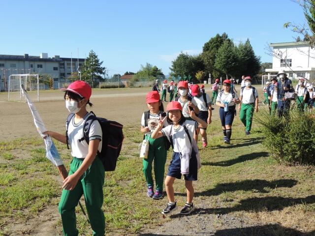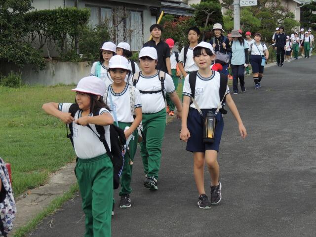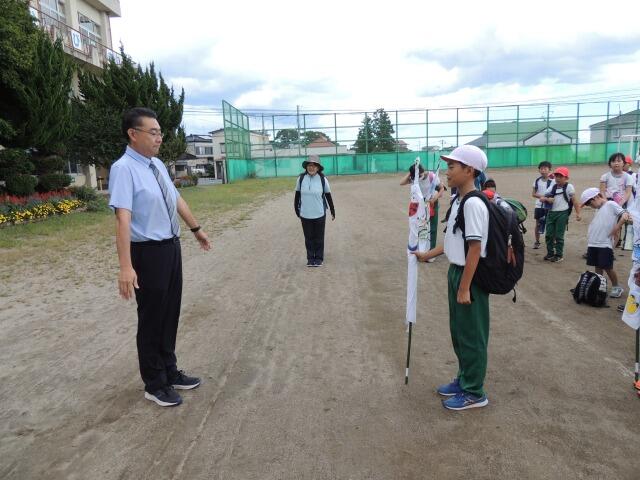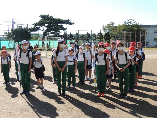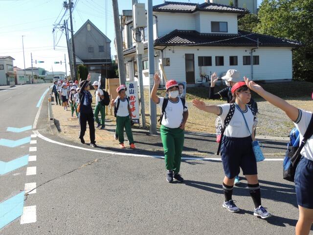 入学したばかりの1年生は、交通安全協会の皆様に見守られながら下校しています。