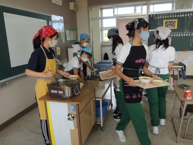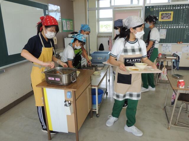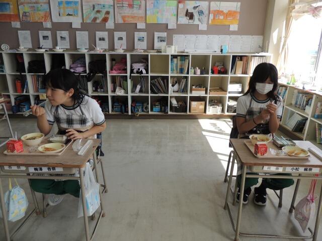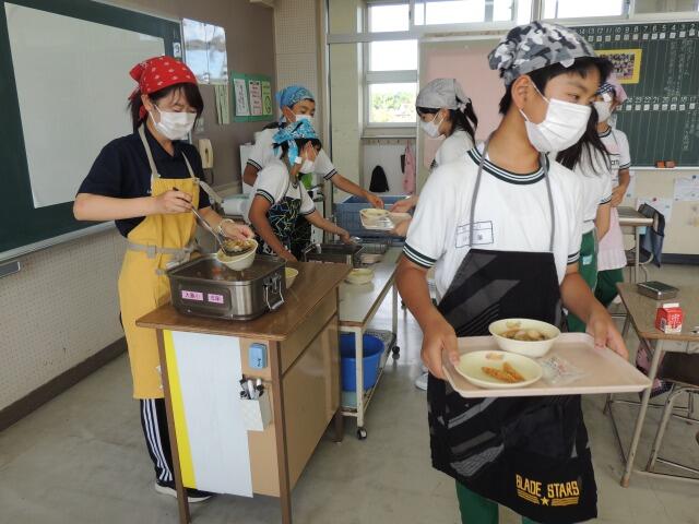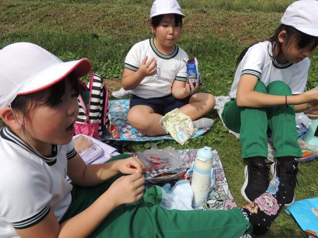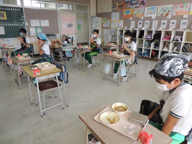 整地された校庭で、楽しそうに運動している児童の様子が見られます。給食時間に教室をのぞいてみると、友達の誕生日を牛乳で乾杯している学年がありました。楽しく運動し、楽しく食べて、健康な体をみんなでつくりましょう!