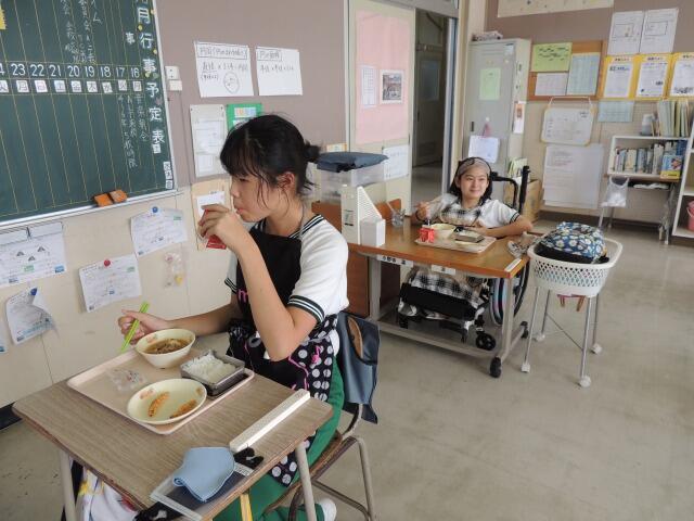 本日から教室での授業が本格的に始まりました。1年生教室では、休み時間に上級生が大勢で押し寄せ、1年生と一緒に遊んだり優しく声を掛けたりしてくれました。