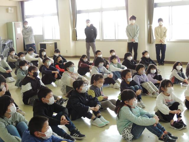 3・4校時、5年生を中心に準備を進めてきた「6年生を送る会」を実施しました。卒業を祝うくす玉が見事に割れ、会がスタート。各学年の心のこもった出し物が続きました。1・2年生はかわいいダンスを披露。3年生も素敵なダンスをプレゼントしました。4年生は6年生に「カルタ取り」で挑み、とった取り札で感謝の気持ちを表しました。5年生は今年1年の行事を6年生にクイズで出しながら、1年の労をねぎらいました。委員会の引き継ぎの後、6年生からお返しの出し物。さすが、6年生、1年生から5年生大爆笑。みんな笑顔の素晴らしい会でした。