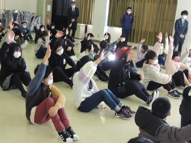 昨年8月にご来校いただき、プールの草取りをしていただいた名城大学の皆さんに再び来ていただき、ちょうど1ヶ月後に卒業式を控えた体育館の掃除をしていただきました。普段、なかなか手が回らないギャラリーや広いフロアをきれいにしていただき、最後にワック掛けまでしていただきました。おかげさまで、体育館がぴかぴかになりました。ありがとうございました。