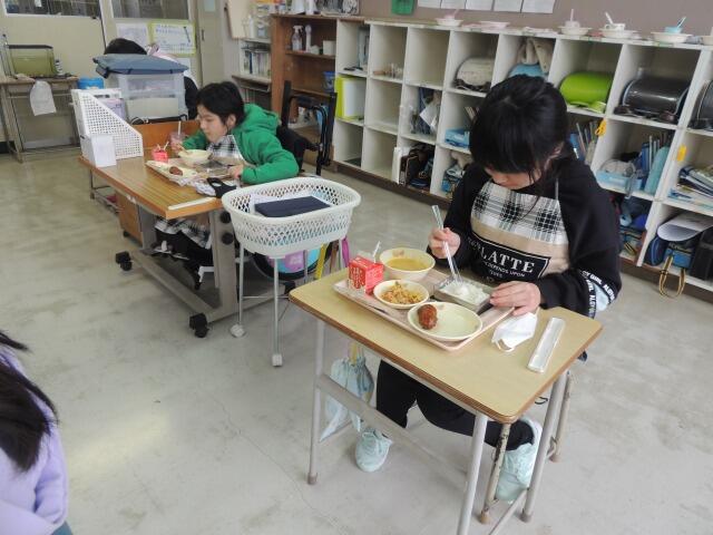 今日の給食は、笹かまぼこの磯辺揚げ、ごまあえ、油麩の味噌汁(郷土料理メニュー)です。今日は6年生の教室。今日もしっかりおかわりしています。気持ちのいい食べっぷりです。さて、1月24日から 30日まで「全国学校給食週間」です。日頃の感謝の気持ちを込めて、全校児童が給食センターの皆さんに感謝の手紙を書きました。手紙の中で、好きなメニューについて書いている児童が多かったのですが、本校児童のナンバー1メニューは、「カレー」を押さえて、なんと「鶏肉のレモン煮」でした。6年生では、「ナムル」が人気でした。