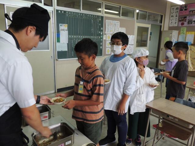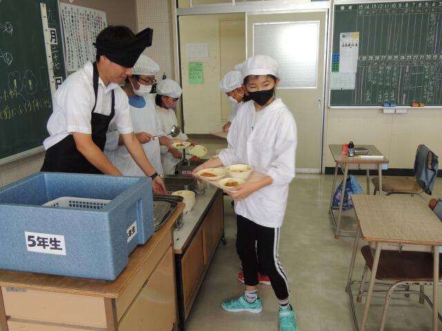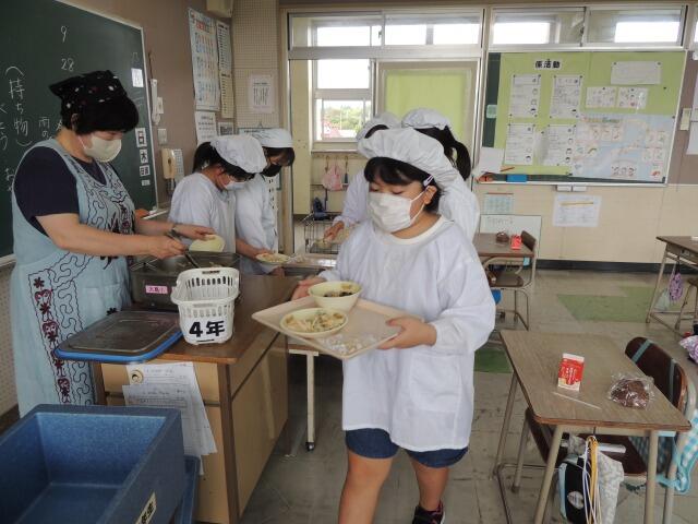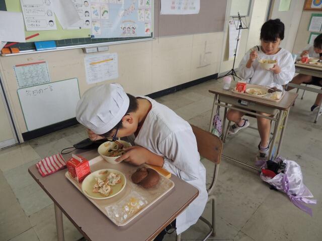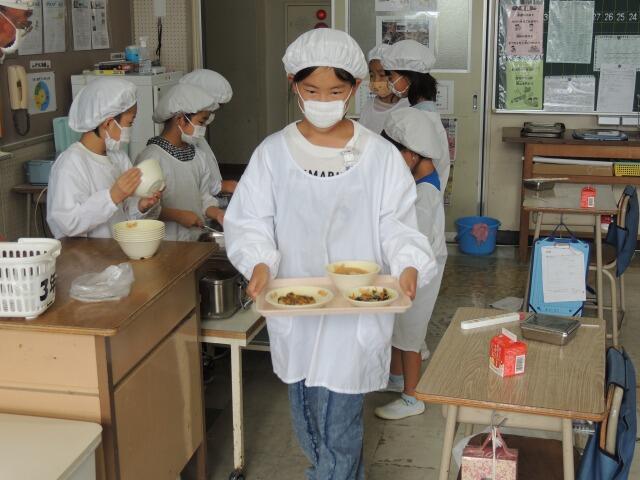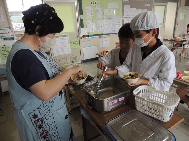 今日の給食は、サメのピリ辛焼き、マイタケの中華炒め、ワカメスープです。今日は4年生・・・と思ったら、すでに食べていたので、5年生の教室。(4年生は明日行きます!)マイタケの中華炒めにおかわりの行列ができました。その中に「枝豆取ってください。」という子がいました。「苦手なの?」と聞くと、「塩ゆで以外だめなんです。」「じゃあ、ずんだもだめ?」「ずんだは甘いから、大丈夫です。」・・・なるほど。
