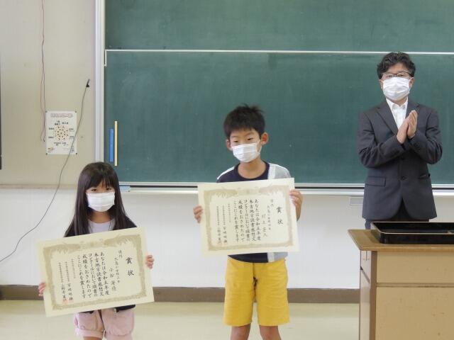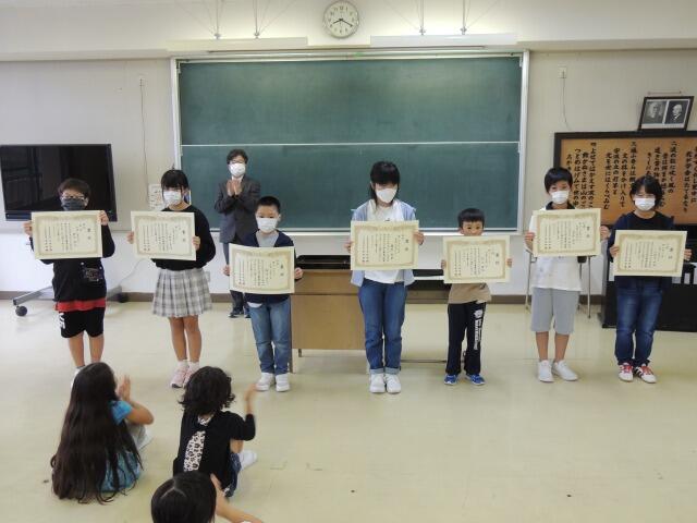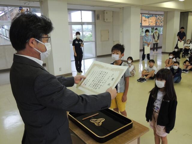 夏休み中に頑張って取り組んだ作品がたくさん表彰されました。「作文宮城」「読書感想文」「敬老作文」などにおいて入賞した児童に賞状を伝達しました。また、スポーツテストで優秀な成績だった児童と昨年度より大きく記録を伸ばした児童にそれぞれ、優勝賞、レベルアップ賞を授与しました。これからも体力作りに励んでほしいですね。