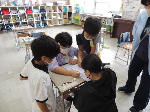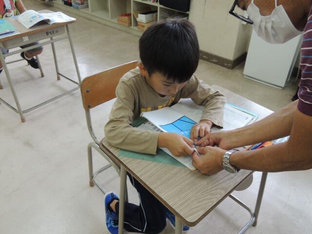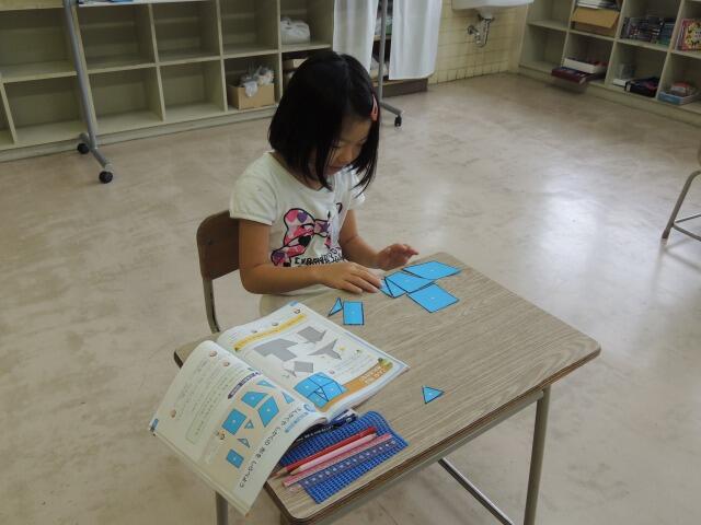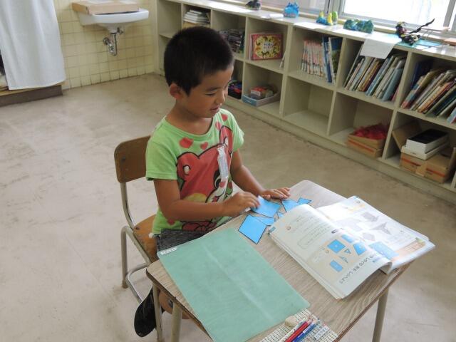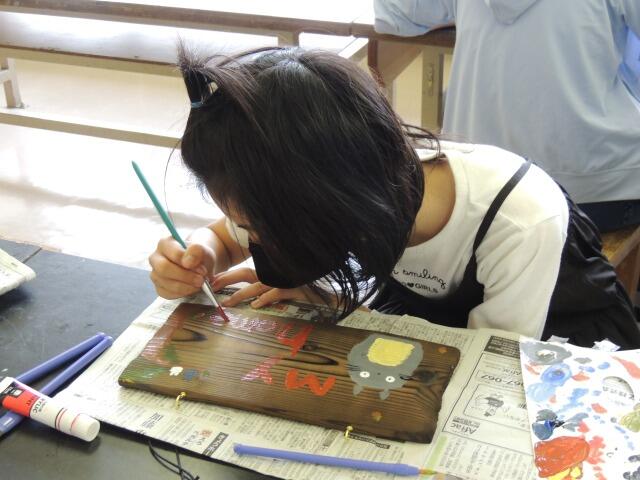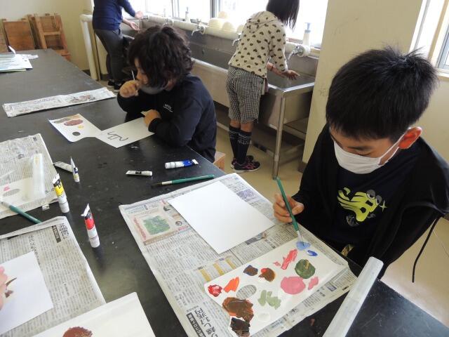 1年生は、算数のまとめのテスト、早く終わってくつろいでいる子もいました。2年生は,算数「タングラム」色板を並べていろいろな形を作ります。結構苦戦していました。3年生は国語、「パラリンピックについて調べよう」カメラを向けると笑顔でピースサインをしてくれる子がいました。4年生は算数、友だちの問題を手伝う姿が見られました。ここでも、早く終わって、くつろぐ様子が見られました。5・6年生は野外活動で作ってきた焼き板の絵付けです。アクリル絵の具を上手に使って、花山の思い出に浸りながら制作していました。学期末が近いためか、どこの教室も楽しそうに学習していました。