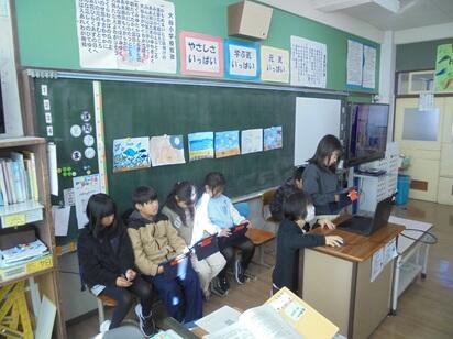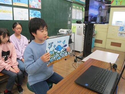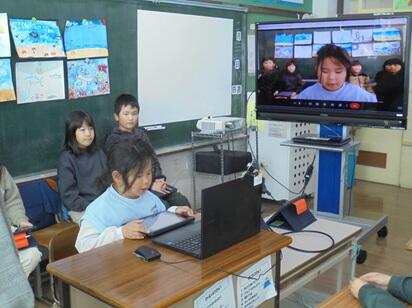 海洋教育子どもサミットin東北が開催されました。本校からは4年生が参加し、同じグループになった岩手県洋野町立大野小学校の5年生、同じく洋野町立種市小学校の6年生の皆さんと学習内容の成果を報告をし合ったり、互いの発表を受けて考えたことを基に意見交換をしたりしました。