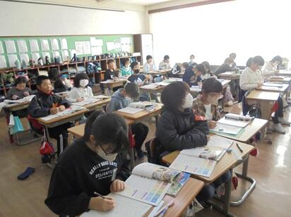 6年生は3人の男の子が最後まで校庭に残ってプランター運びを職員と一緒に行い、先に教室に戻ったメンバーが3人分の給食の準備をしっかり整えました。一方、5年生はいち早く教室に戻った2名がパパッと給食着を身にまとい、配膳室と教室を何度も往復して準備を始めました。もちろんその行動に気付いた子供たちも2人を追いかけるように準備を進めます。こうしてどちらの学級でも大きな遅れもなく給食時間を迎えることができました。これも大谷小の子供たちが先輩たちから受け継いできた姿なのかもしれません…☆