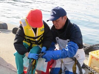 3年生の子どもたちが前浜漁港に校外学習に出掛け、ワカメの苗ばさみ体験をしてきました。講師を引き受けてくださった地域の漁師さんからは、苗ばさみの手順を丁寧に説明していただきました。「かわいい~」「ワカメの苗って、こんなに小さいんだ」…と、初めての体験に心を躍らせる子どもたちの元気な声が漁港に響きます。