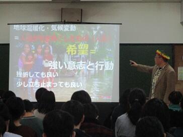 さて、昨日はSDGsへの理解を深め、よりよい未来を創るための学習として、環境教育特別講座を4年生以上の児童を対象に実施しました。講師はキリバス共和国に国籍を持たれるケンタロ・オノさんです。