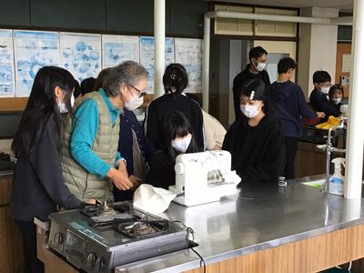 10月31日の2.3時間目に5,6年生がミシンの学習を行いました。講師は地域で活動する「いろは会」の名人の方々です。