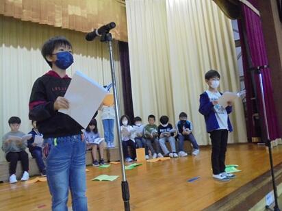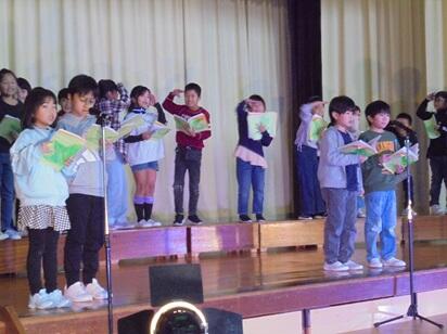 学習発表会(児童公開)を行いました。子供たちは自分たちの学年の発表に一生懸命に取り組みました。詳しい内容は当日の会場でのお楽しみとして、ホームページでは各学年の発表の様子を写した写真を1枚ずつ掲載して紹介します。それぞれの学年の持ち味を生かし、自信を持って発表する子供たちの姿が本当に輝いていました。