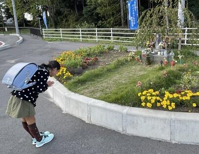 学校裏に設置されている「見守り地蔵」には、どの子も足を止め、しっかり手を合わせてから登校しています。1年生・2年生の中には毎日「行ってきます」」「ただいま!」と、お地蔵さんに優しく語り掛けてから登校している子もたくさんいます。心がほっと温かくなる瞬間です。