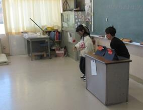 近づいてみると、ほうきとちりとりを手に、落ち葉掃きをしている2年生でした。
