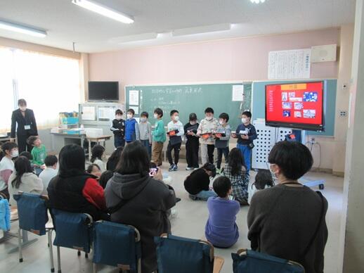 今年度最後の学習参観、子どもたちは生活科や総合的な学習の時間等での学びの成果を一生懸命発表していました。多くの保護者の皆様に御参観いただき、子どもたちの発表に温かな拍手をいただきました。
