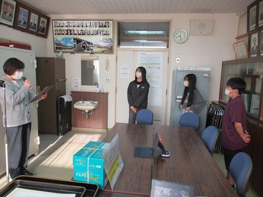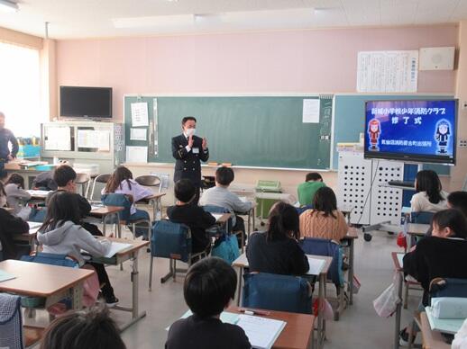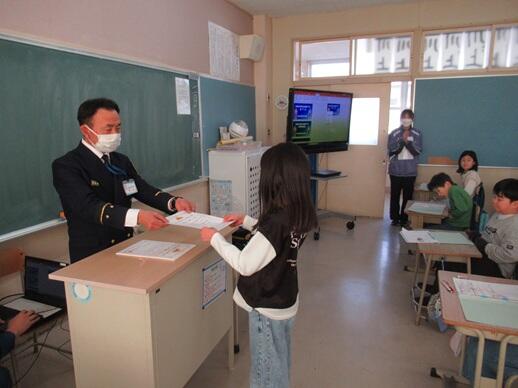 2月17日、3年生が一年間取り組んできた少年消防クラブは、今回が最終回となり、修了式を行いました。式では、気仙沼消防署副所長様より一人一人に修了証が手渡され、子どもたちは少し照れながらも誇らしげな表情を見せていました。これまでの活動では、火事を起こさない工夫や避難の仕方、身の回りの危険に気付く視点など、防火・防災の大切さを学んできました。最後は、今年度学んだ内容をクイズ形式で楽しく振り返り、理解を確かめ合う姿が見られました。学んだことを家庭や地域の生活の中でも生かし、自分や周りの命を守る行動につなげていくことと思います。