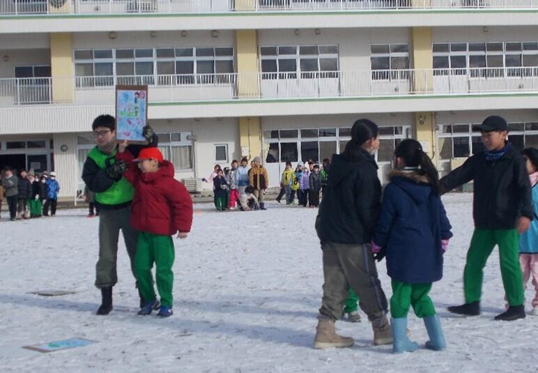 これは、白山小学校で行っていた行事で、鹿折小学校が引き継いで取り組んでいる伝統的行事です。5・6年生の計画委員が中心となり、札の準備や開閉会式の運営を行いました。
