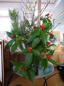 一つ目は,職員室前の廊下に飾られている生花です。お正月を祝う松・赤い実の千両・蝋梅(ロウバイ)が,きれいに生けられています。子供たちも、足を止め見入っています。これは,用務の鈴木さんがご厚意で,季節季節の花を飾ってくださっているのです。鹿折っ子たちに,季節を感じ,心穏やかに生活してほしいとの思いから・・・・。その思いに感謝しつつ,心があたたかくなります。