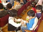 しかし,あの日,そんなおむすびがどれほど美味しかったか,ありがたかったか,ひとつのおにぎりを半分や1/3にして分け合い,笑顔でほおばった現実があったことを担任から子供たちに話し,おにぎりをいただきました。