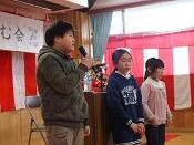 中学校でも努力して勉学に励み,力をつけてふるさと鹿折の復興の担い手になってください。これからも,私たちは33名の「最強の応援団」です。