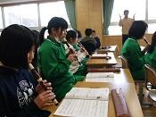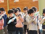 卒業式まであと1週間。この時期,6年生にとっては学校生活のすべてが『小学校生活の最後』です。それを知らずに意識している6年生。音楽の時間を覗いてみると,きっと卒業演奏なのでしょう,『風を切って』の合奏練習の真っ最中でした。ピリッとした何とも言えない緊張感が漂ってきます。木琴や鉄琴,アコーディオン,電子ピアノ,バスマスター,そしてリコーダー,すばらしい演奏です。6年生全員が,心をひとつに卒業記念演奏を仕上げよう・・・とする思いが聞いている私の耳と心に伝わってきました。『風を切って』の曲想が少しもの悲しい雰囲気があるので,卒業を前にした6年生の気持ちを映し出しているようにも聞こえました。