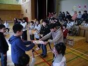 78日間の第2学期も,いよいよ明日がフィナーレ。寒さが少しは緩んだとはいえ,外は,吐く息は白くなるどの寒さです。少し柔らかい校庭もなんのその,子供たちは冬休みの間いっしょに過ごせないこと,いっしょに学習できないこと,遊べないこと・・・を知ってか知らずか,あたかもその別れを惜しむように,男女仲良く校庭であそぶ姿が目に入りました。ワーッ,キャーッと元気な声が響き渡っていました。男女の隔てなく仲良く遊び姿に,鹿折っ子の『純粋さ・素直さ』をあらためて見ることができます。