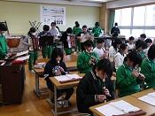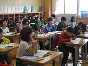 午前中,3年生は,総合的な学習『鹿折の宝ものをさぐろう!~人・自然・もの~』で,「白山小唄」の歴史や内容を探っているグループが,講師を招いてお話を聞きました。これまで調べていて疑問に思ってることを直接講師にたずねる活動でした。次から次に質問が出され,講師の先生もうれしい悲鳴を上げていらっしゃいました。学校統合で『白山小唄』がこのまま消えてしまうのではないかと心配されており,学校に呼ばれてお話しができることは大変うれしいともおっしゃっていました。ありがとうございました。